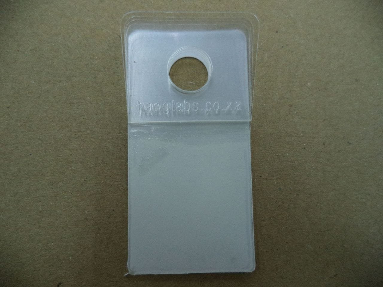 The Flexible adhesive area of these Hang Tabs allows them to be applied to products and still bend out of the way when your products are packed into their normal shipping cartons.